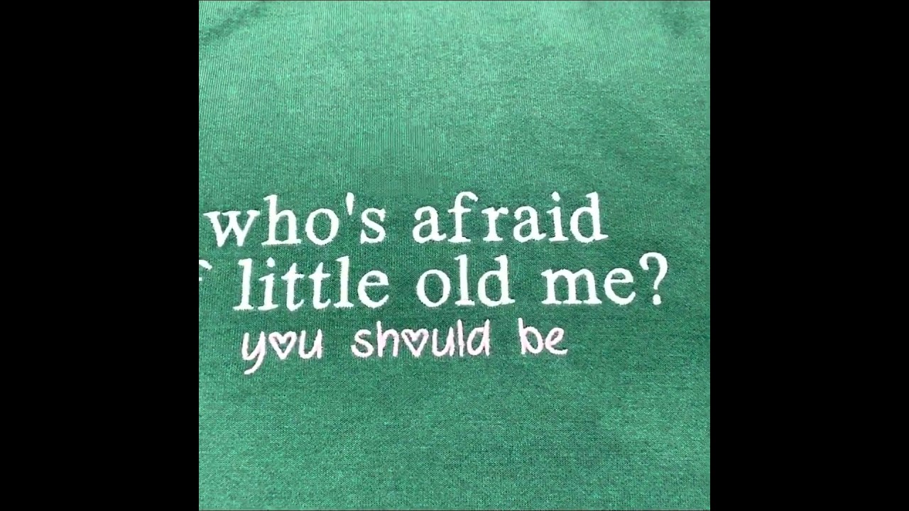 ✨Introducing our custom embroidered "Who's Afraid of Little Old Me" sweatshirt, the perfect blend of trendy, comfy, and funny. Whether you're a Swiftie or want a unique sorority sweatshirt, this custom piece is sure to make a statement.